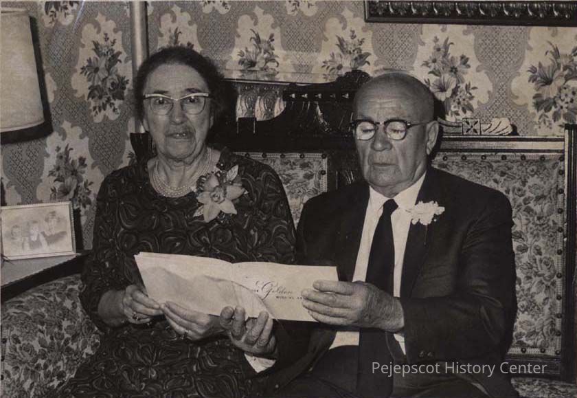 A B/W photographic view of Mr. and Mrs. Adelard Ouellette at their Golden Anniversary.