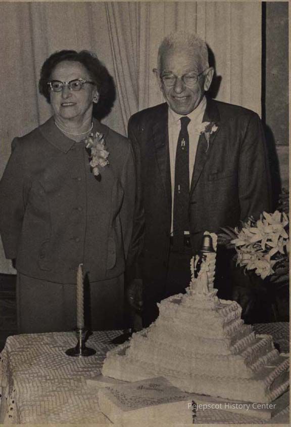 A B/W photographic view of Mr. and Mrs William S. Barnes at their golden wedding anniversary party. This photo was published 6/26/1969.