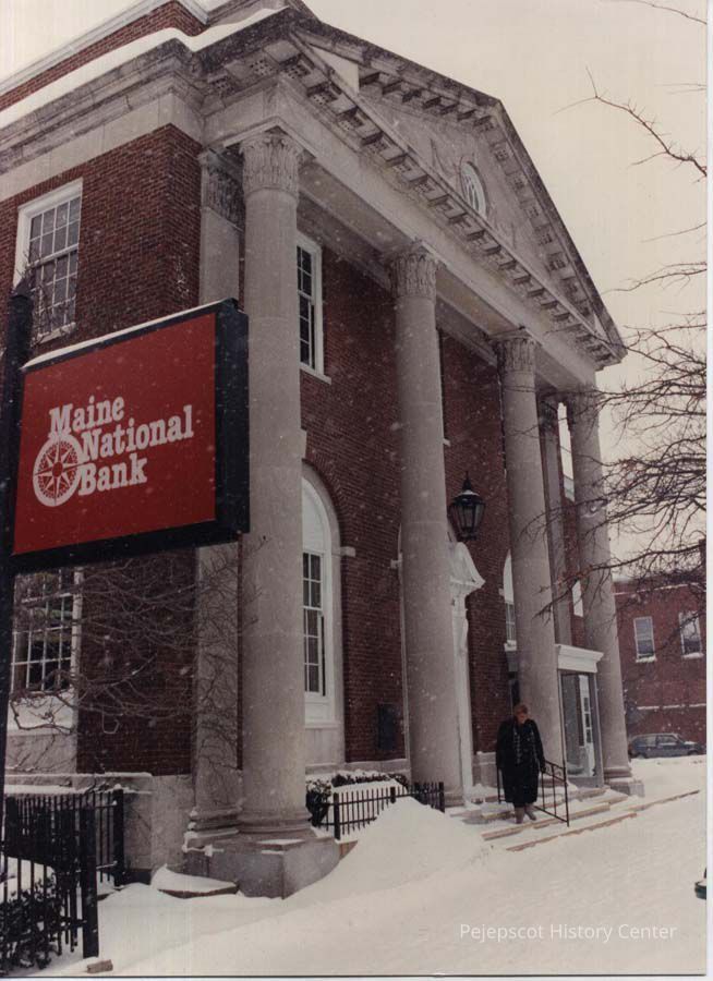 A photo view of Maine National Bank on Maine Street. 1/25/1990.