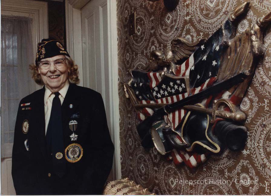 A color photographic view of Margaret Erswell in an American Legion uniform. This photo was published 11/10/1989 and 1/22/1990.