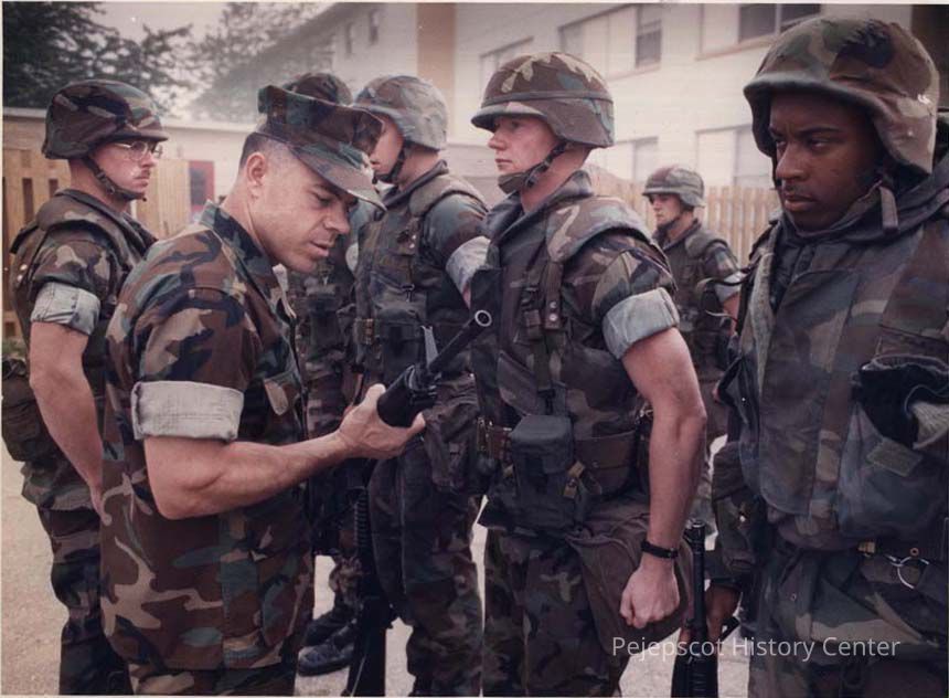 A color photographic view of Marines at BNAS. This photo was published 6/21/1991.