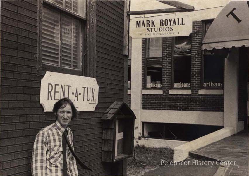 A B/W photographic view of Mark Royall who now runs two businesses, Mark Royall Studios and Rent-A-Tux.. This photo was published 4/14/1981.