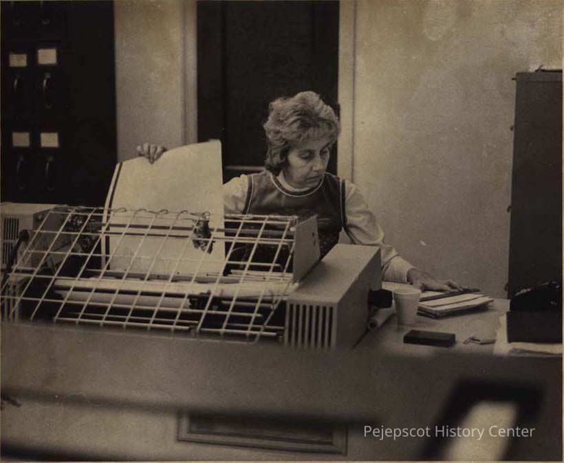 A B/W photographic view of Melvina Moore. Marked on the back, "Deputy Treasurer". This photo was published 4/25/1980.