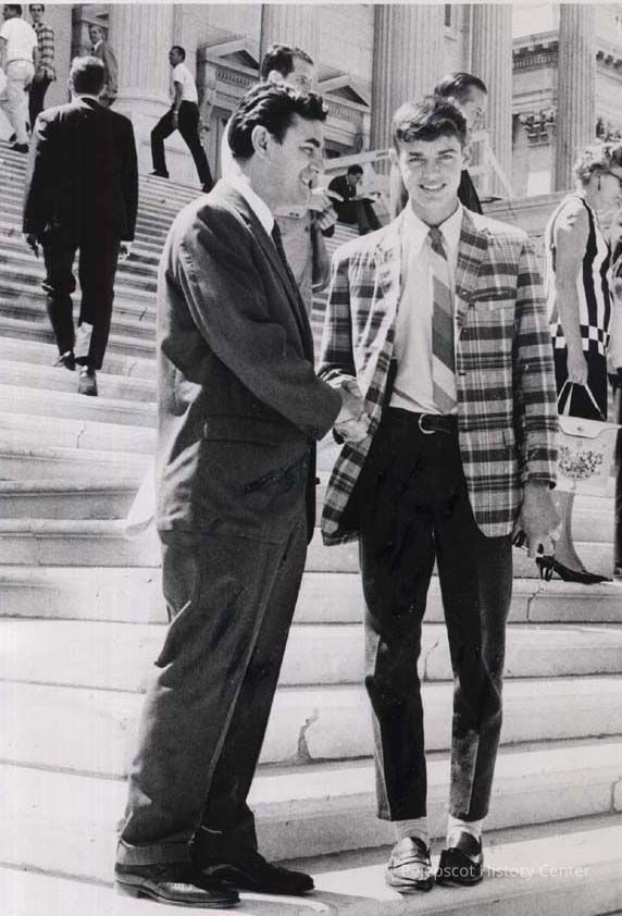 A B/W photographic view of Mike Barabeau and R. Kyros.