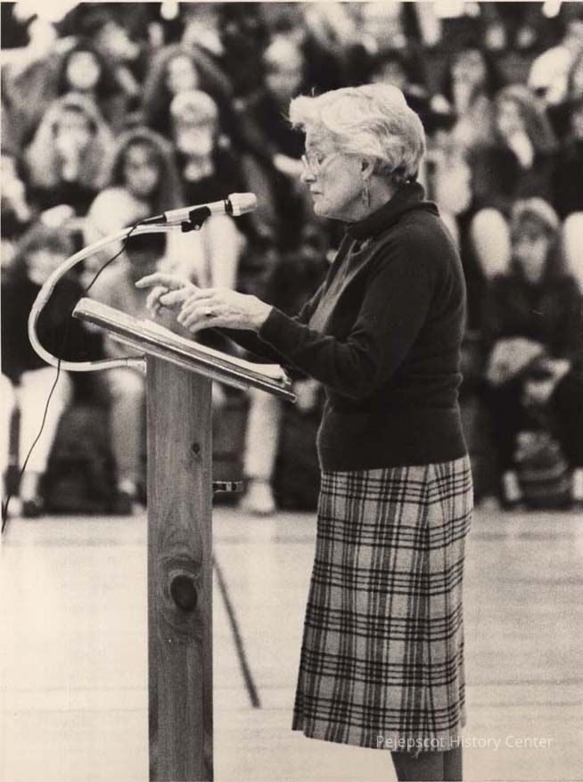 A B/W photographic view of Mrs. Lamb. This photo was published 12/5/1990.