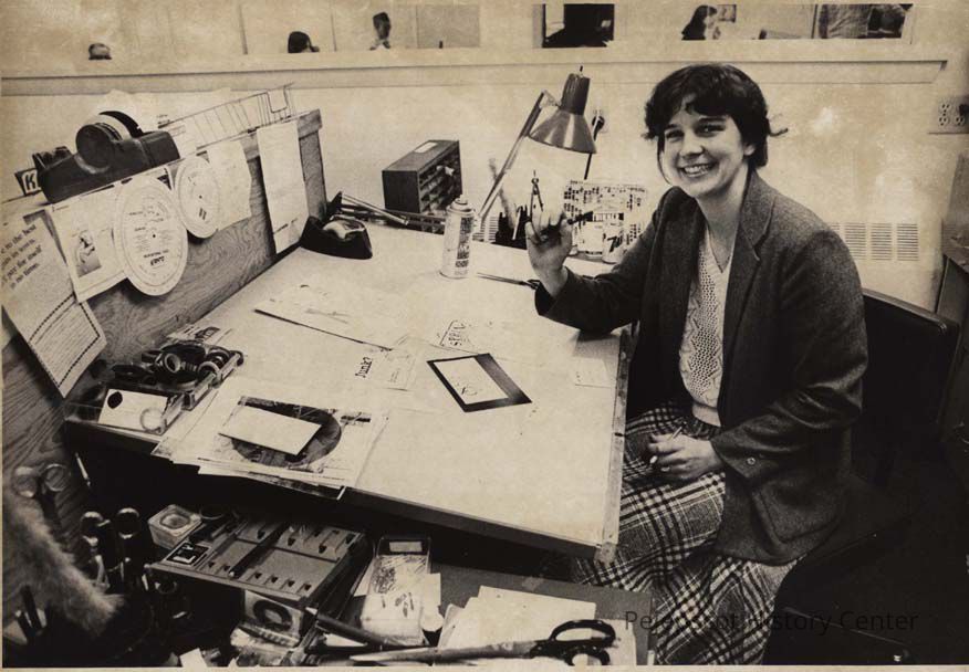 A B/W photographic view of Nancy Montgomery. She won a merit award in the newspaper campaign category for art and copy she prepared. This photo was published 5/1/1980.