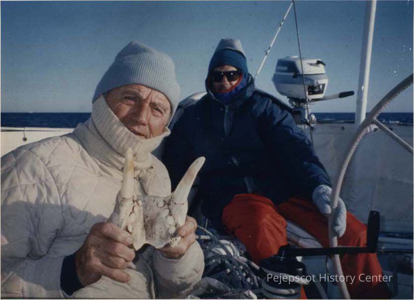 A color photographic view of Nelson Blackburn and Max Chetcher on board the "Reindeer". This photo was published 9/20/1991