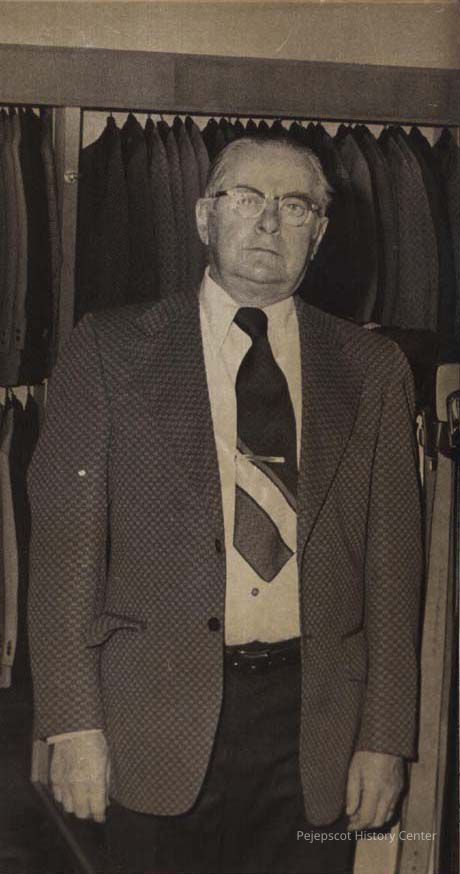 A B/W photographic view of Numa J. McDuff of McDuff's men's clothing business. This photo was published 4/12/1973.