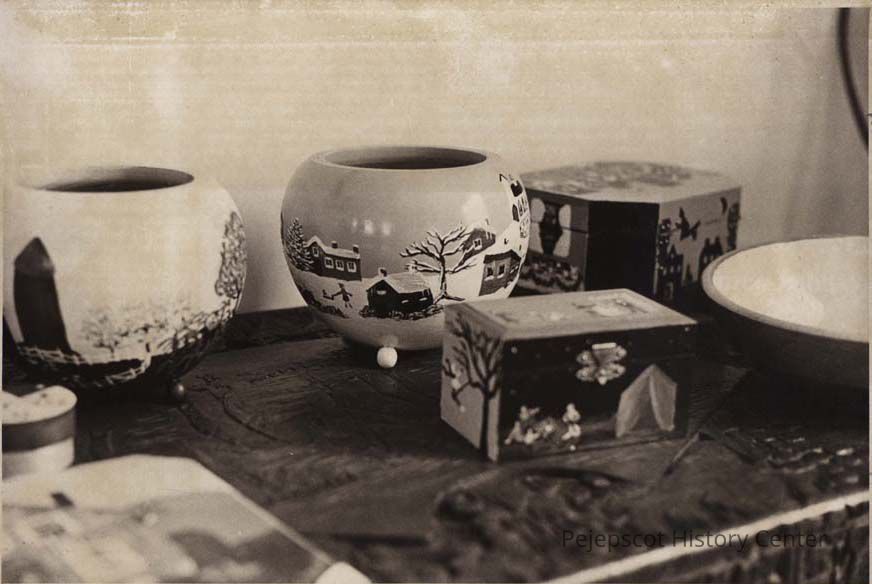 A photo view of objects painted by Elsie Van Savage. 3/6/1975.