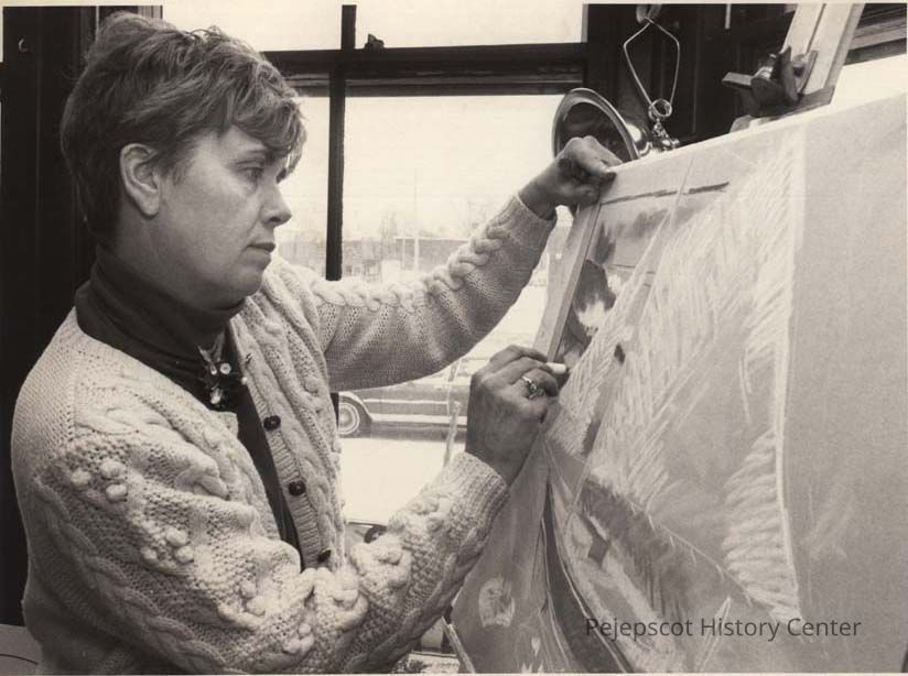 A B/W photographic view of Pamela Moore. She does pastels, (still Life). This photo was published 1/30/1992