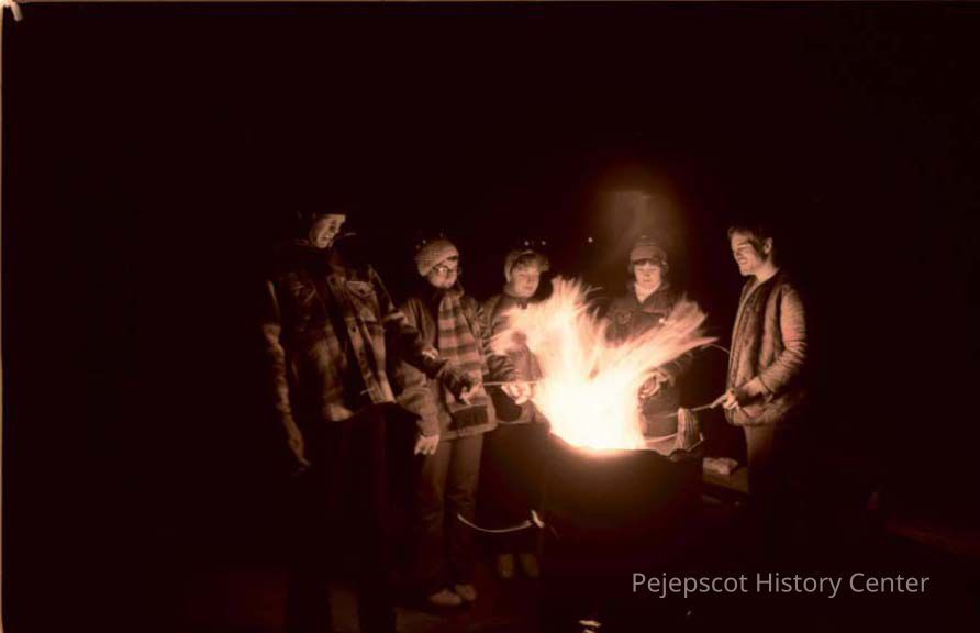 A photo view of people at a bonfire. 12/31/1977.Entry/Object ID