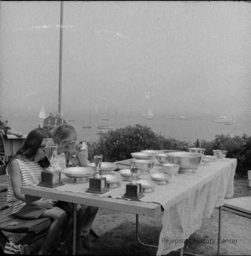 A color negative photographic view of people at the Interclub Regatta, Bailey Island.