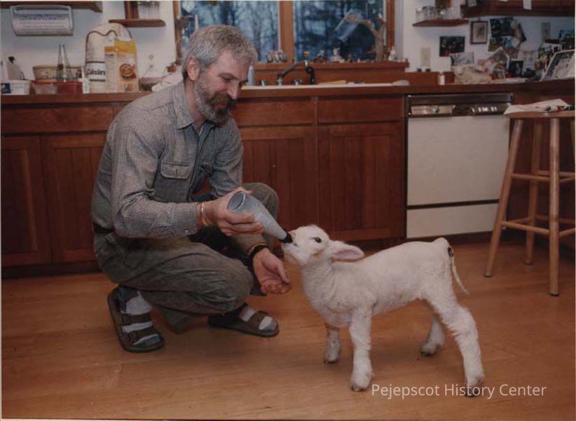 A photo view of Pete Galle and Tilly the lamb. 1/3/1992.