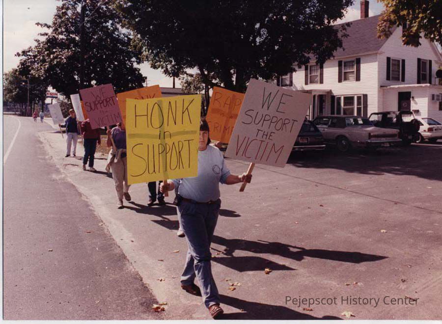A color photographic view of protest marchers. This photo was published 9/24/1990.