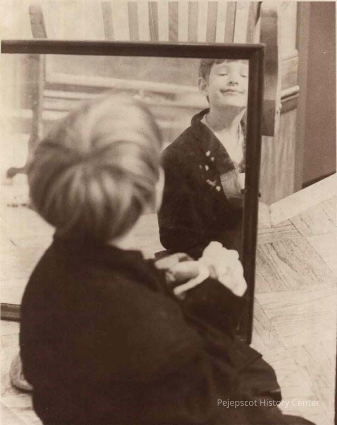 A B/W photographic view of Ransom Richardson age 7 of Brunswick, practices expressions..