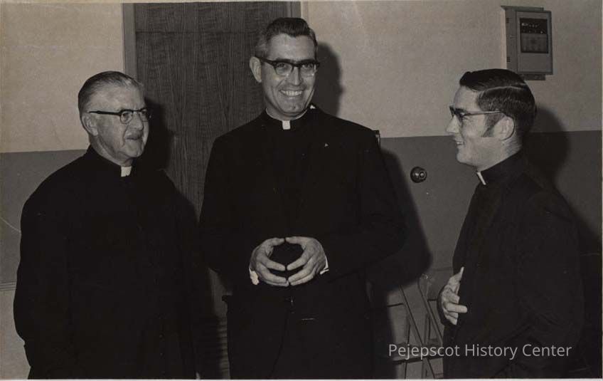 A B/W photographic view of Rev. Frederick Carrigan (don't know which he is, assume he is the one in the middle. He was being honored at a testimonial.