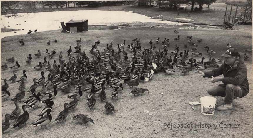 A photo view of Robert Smith feeding ducks. 1/31/1992.