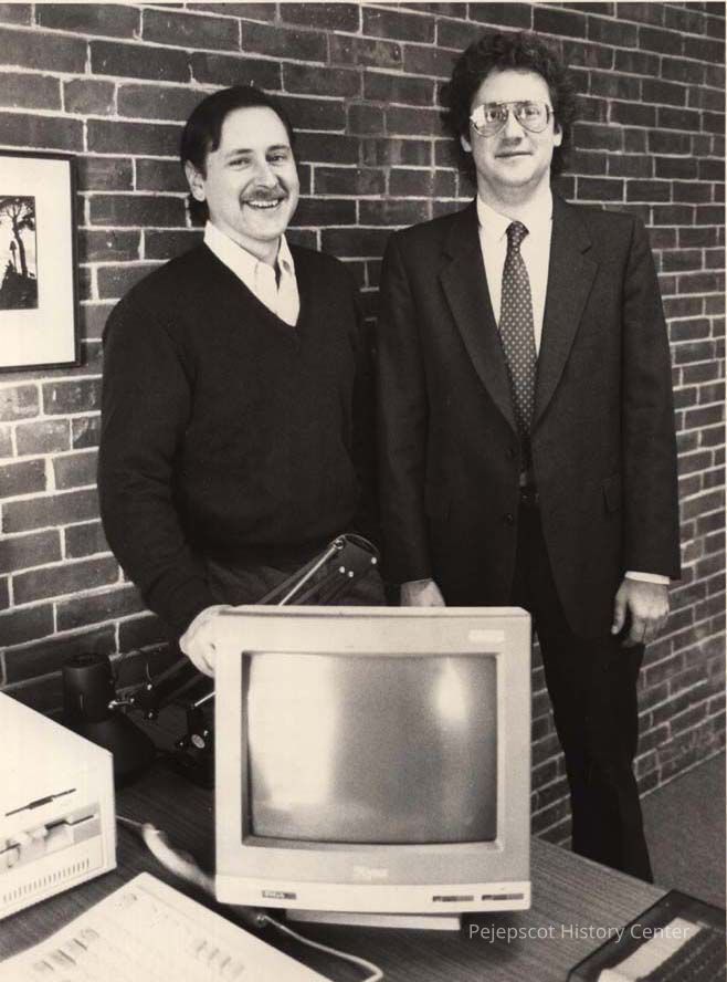 A B/W photographic view of (l) Robert Johansen & (r) Ted Hunter. This photo was published 2/25/1991.