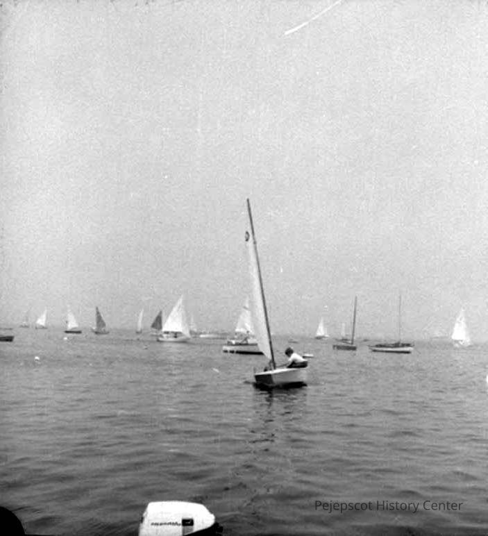 A color negative photographic view of sail boats in the Interclub Regatta.