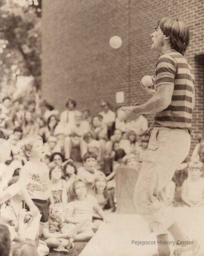 A B/W photographic view of Sam Kilbourn at the Maine Festival.