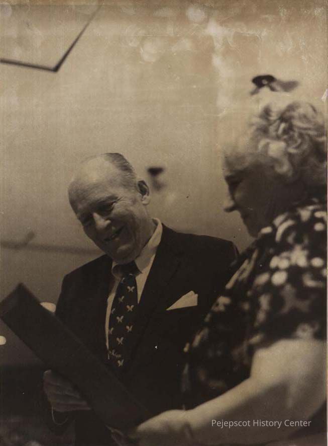 A B/W photographic view of Samuel A. Ladd, Jr. and his wife Estelle look over his citizen award. This photo was published 5/12/1978