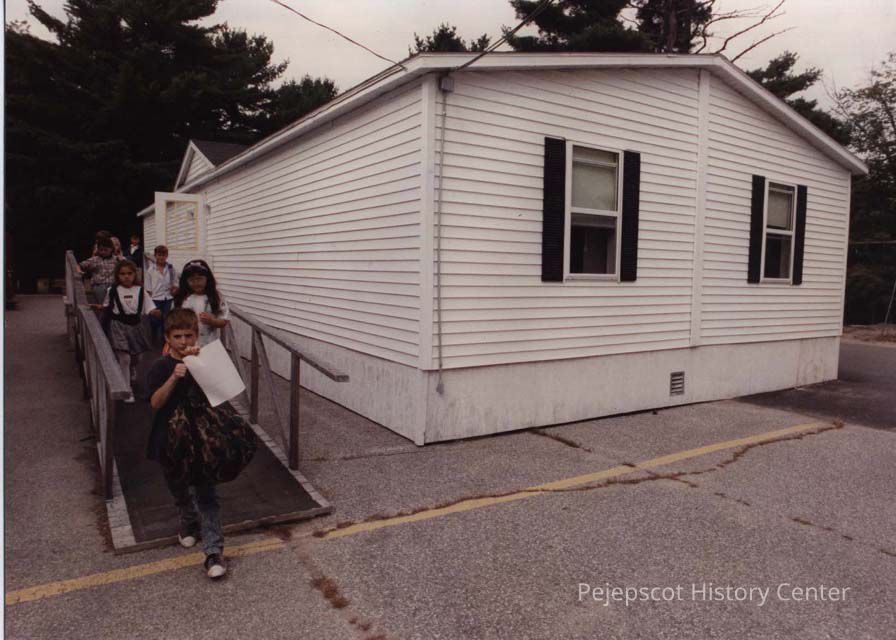 A photo view of school children leaving a portable classroom. 9/13//1989.