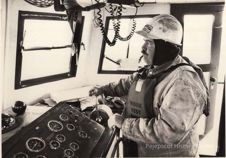 A B/W photographic view of Scott Gibson, tug boat captain. This photo was published 4/15/1992.