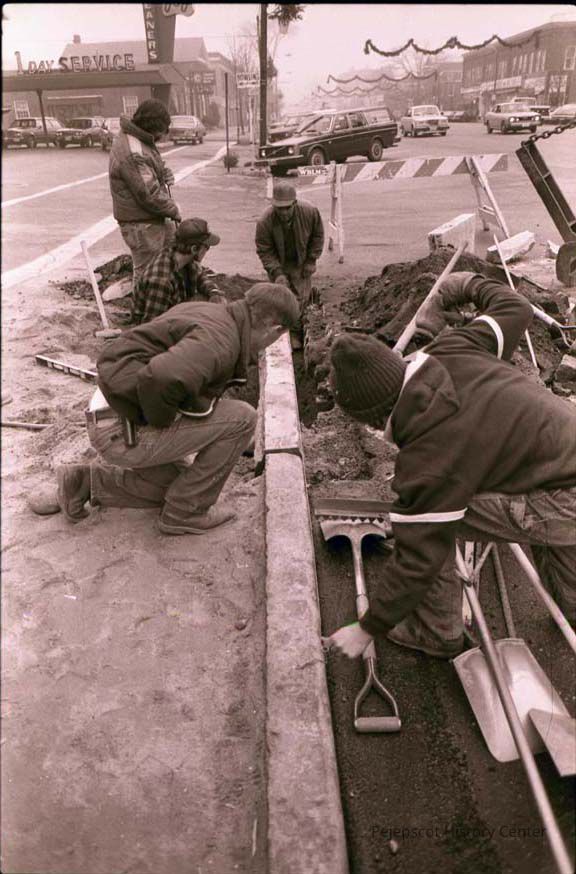 A photo view of sidewalk work being done. 11/27/1984Entry/Object ID