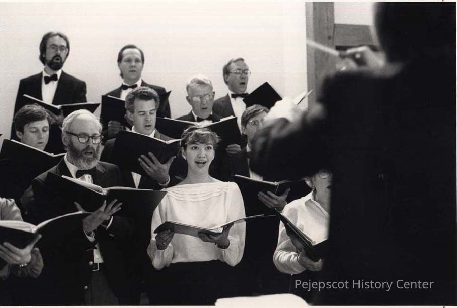 A B/W photographic view of singers at the United Church of Christ Congregational. This photo was published 5/7/1992.