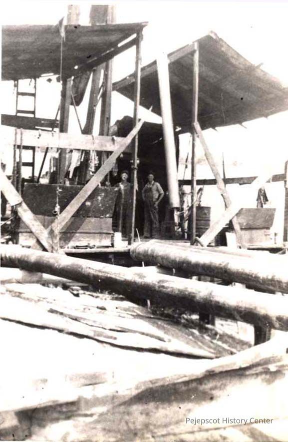 A B/W photographic view of some workmen at the Pejepscot Mill.
