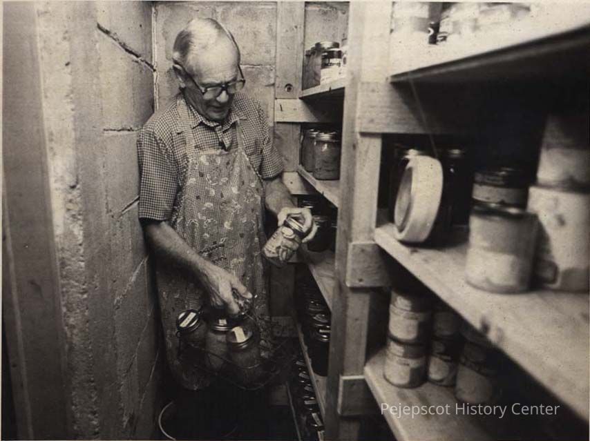 A B/W photographic view of Stan Skolfield as he checks his stock of pickles and preserves.. This photo was published 9/8/1981.