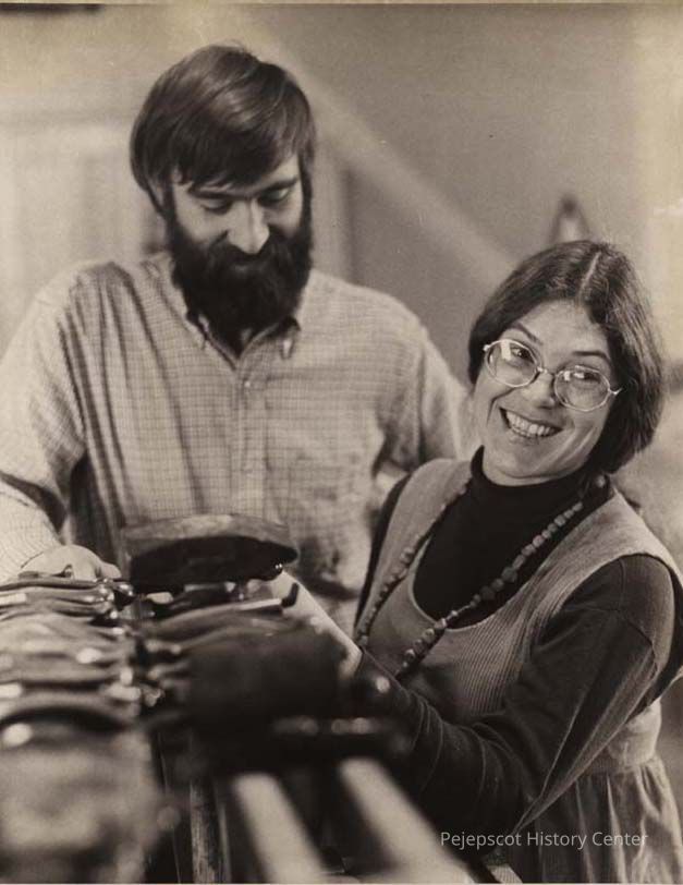 A B/W photographic view of Steve and Judy Brown. They are metal smiths doing business in Freeport. This photo was published 2/27/1975.
