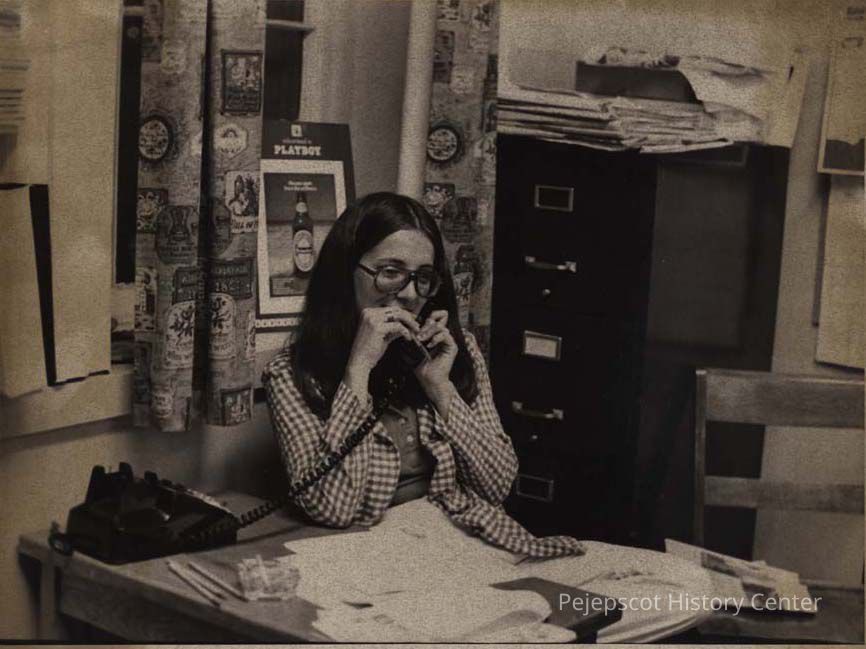 A B/W photographic view of Susan Scanlan, Times Record reporter.
