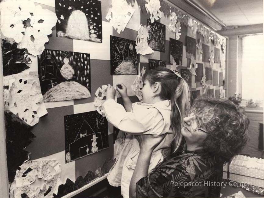 A B/W photographic view of teacher Joline Cogswell and student Karen Stangl, St. John's School. This photo was published 1/27/1992.
