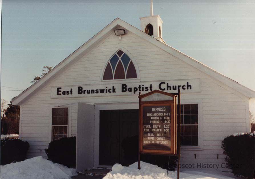 A photo view of the East Brunswick Baptist Church. 12/29/1989.