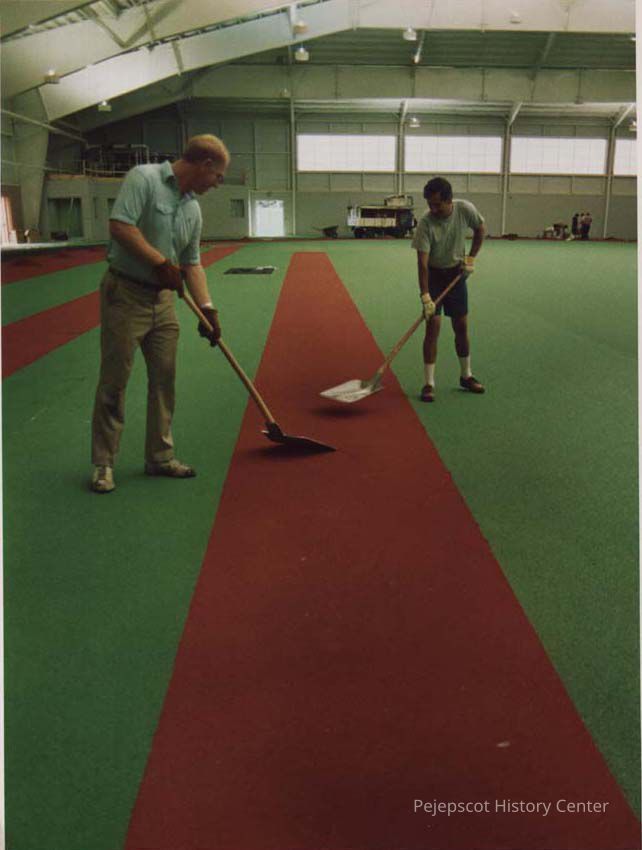 A color photographic view of the field house at Bowdoin College. This photo was published 7/9/1987.