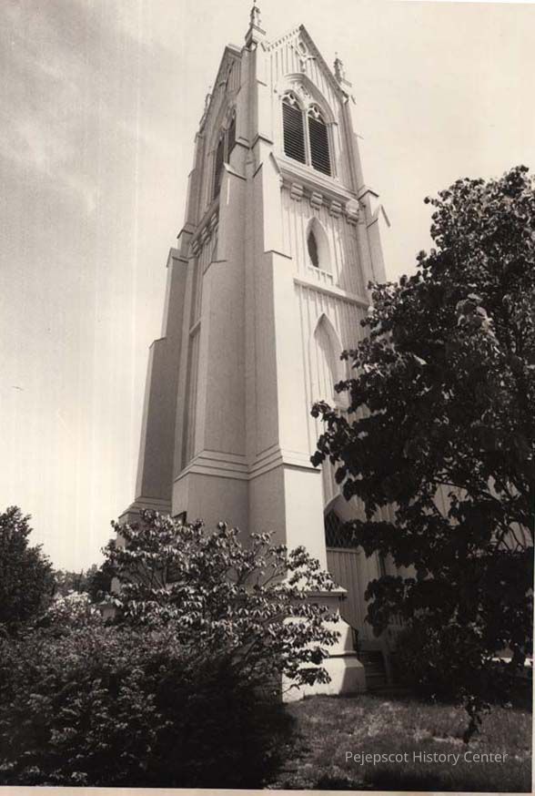 A B/W photographic view of the First Parish Church. This photo was published 6/4/1992.