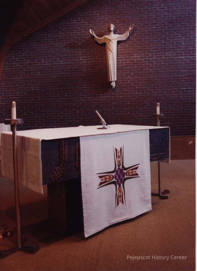 A color photographic view of he interior of a church. This photo was published 11/9/1990.