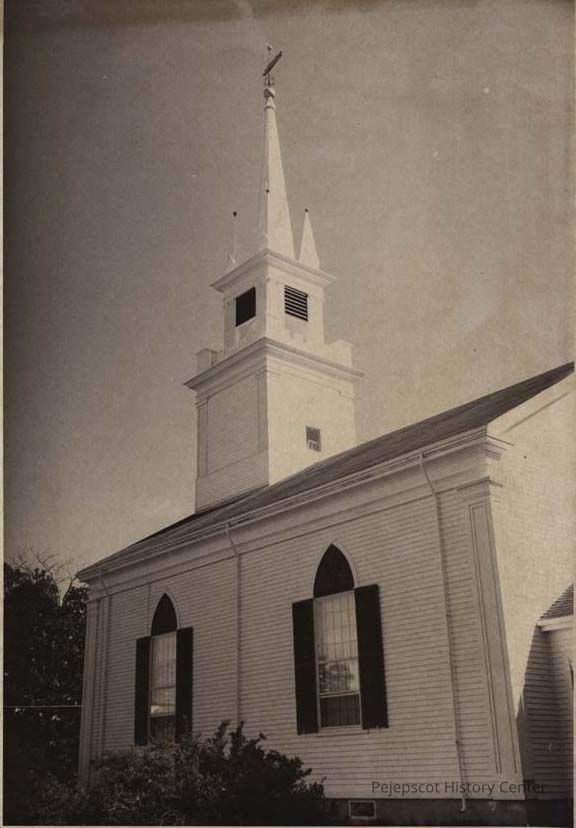 A B/W photographic view of the Kellogg Church, Harpswell. This photo was published 7/15/1977.
