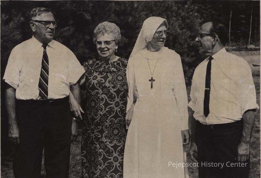 A B/W photographic view of the Lachance family. They are (l to r) Edmund Lachance Sr., Mrs. Delia LeBourdais, Sister Marie Remi and Philip Lachance. This photo was published 8/6/1968.