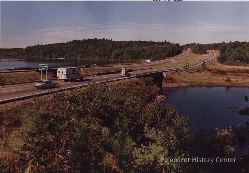 A color photographic view of the New Meadows River. The photo was taken in West Bath looking towards Brunswick. This photo was published 9/18/1987.