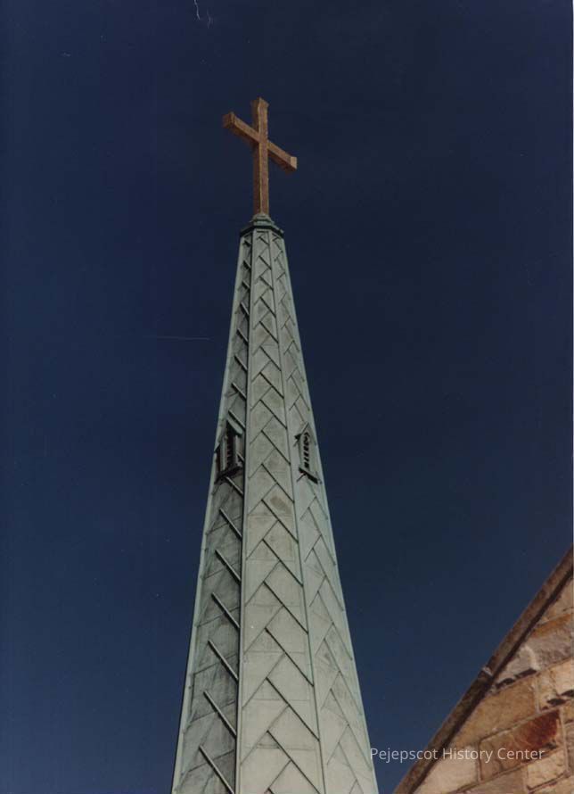 A photo view of the steeple at St. John's Church. 10/27/1989.