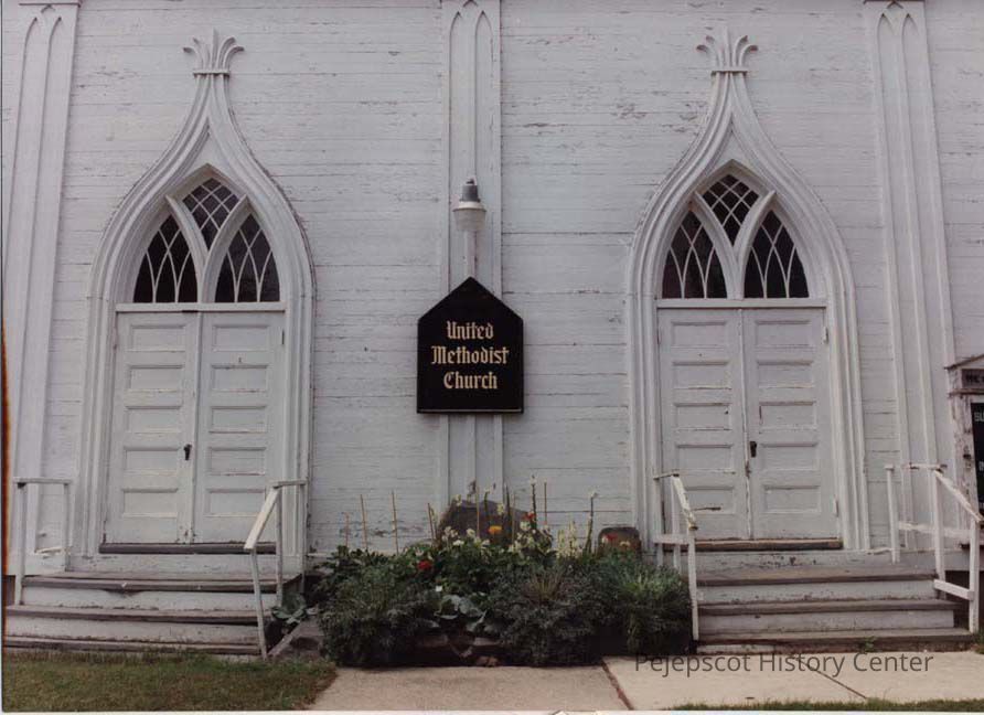 A color photographic view of the United Methodist Church. This photo was published 8/18/1989.