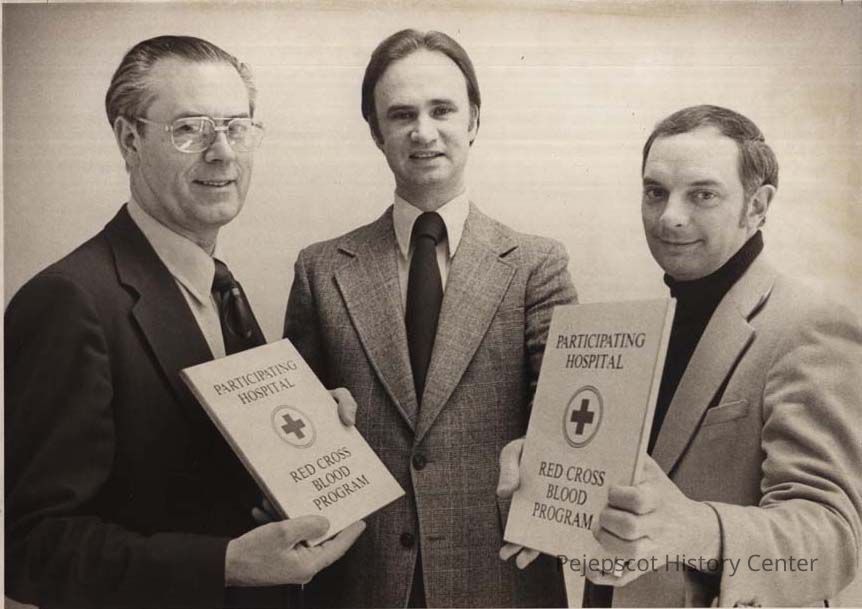 A B/W photographic view of three men. Marked on front, "hospitals recognized". This photo was published 11/23/1976.