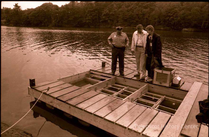 3 people looking at a float.