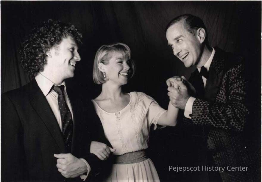 A B/W photographic view of John-Charles Kelly, Julie Dixon and Kevin Wright in Maine State Music Theater production of "LA CAGE AUX FOLLES", 7/28 to 8/8/1992.