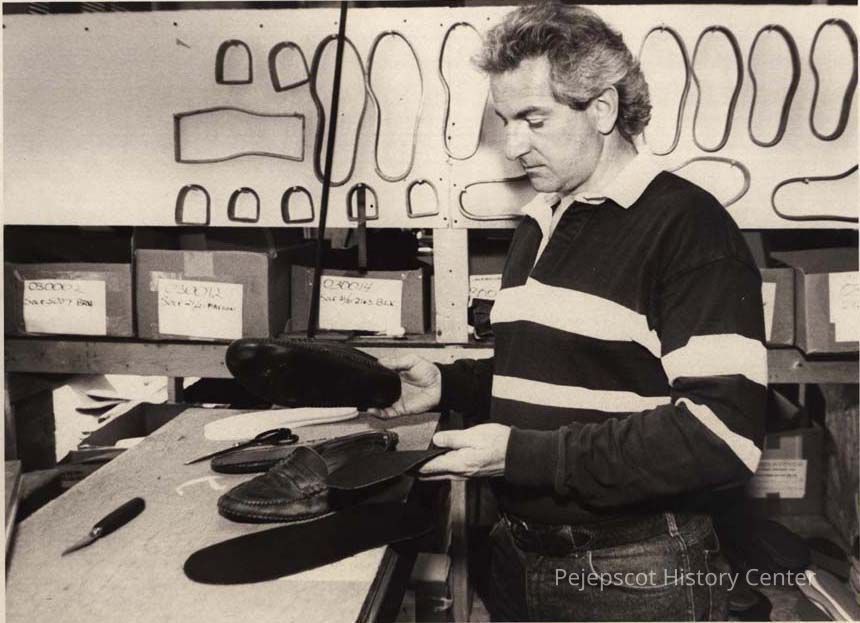 A photo view of Tim Farley, shoe repairman. 5/20/1992.