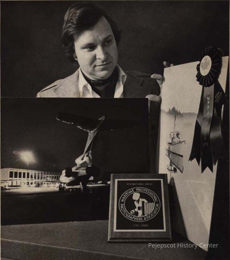 A B/W photographic view of Tom Jones receiving an award. Marked on the back, "Award winning work". This photo was published4/7/1976 and 8/26/1980.