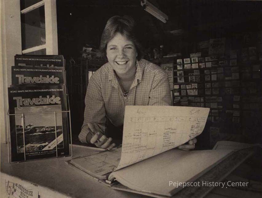 A B/W photographic view of Tracey Peck. who works at the Brunswick information booth. This photo was published 8/10/1979.