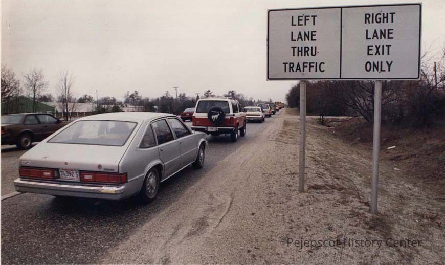 A color photographic view of traffic backed up on I 95. This photo was published 4/5/2990.